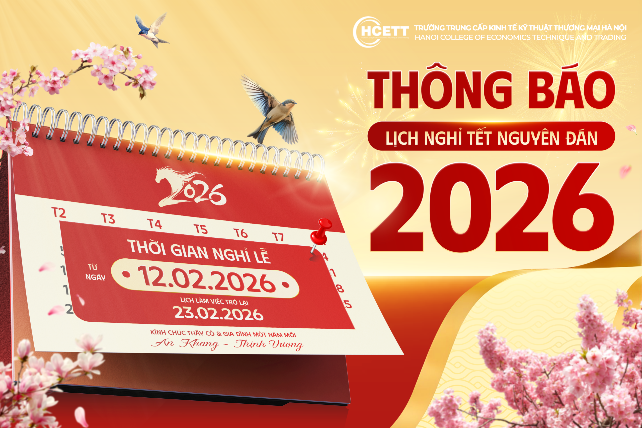 Nhằm tạo điều kiện để cán bộ, giảng viên Trường Trung cấp Kinh tế Kỹ thuật Thương mại Hà Nội chủ động sắp xếp công việc, nghỉ ngơi và sum họp bên gia đình trong dịp Tết Nguyên đán Bính Ngọ 2026, Nhà trường trân trọng thông báo lịch nghỉ Tết như sau: